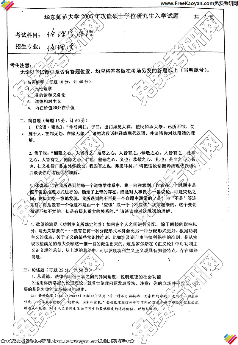 华东师范大学2005年半岛在线注册真题-伦理学原理