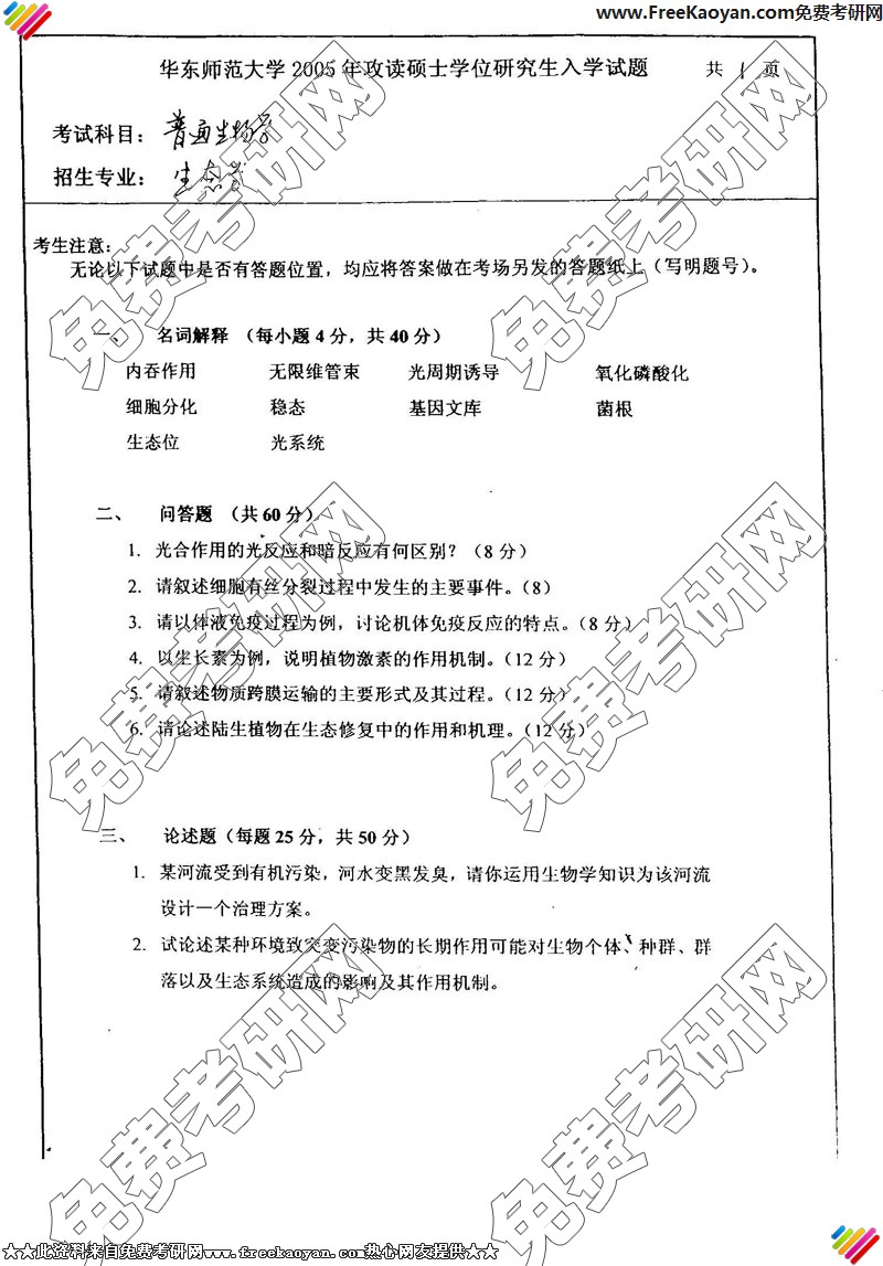 专业课半岛在线注册经验 本站小编 FreeKaoyan 2018-01-22华东师范大学2005年半岛在线注册真题-普通化学原理