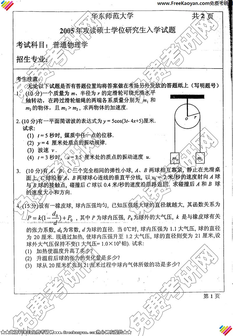 华东师范大学2005年半岛在线注册真题-普通物理学