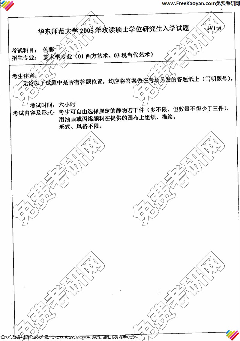 专业课半岛在线注册经验 本站小编 FreeKaoyan 2018-01-22华东师范大学2005年半岛在线注册真题-美术教育学