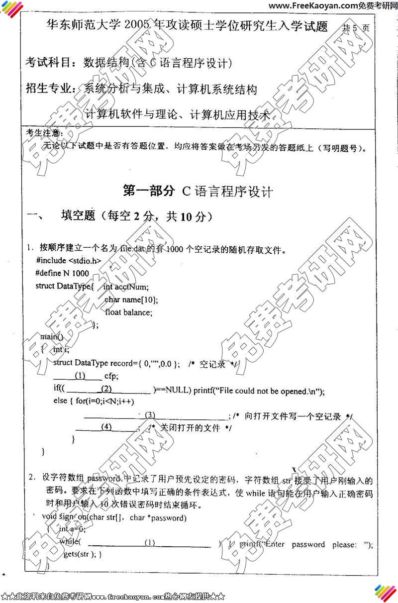 华东师范大学2005年半岛在线注册真题-数据结构(含C程序设计)