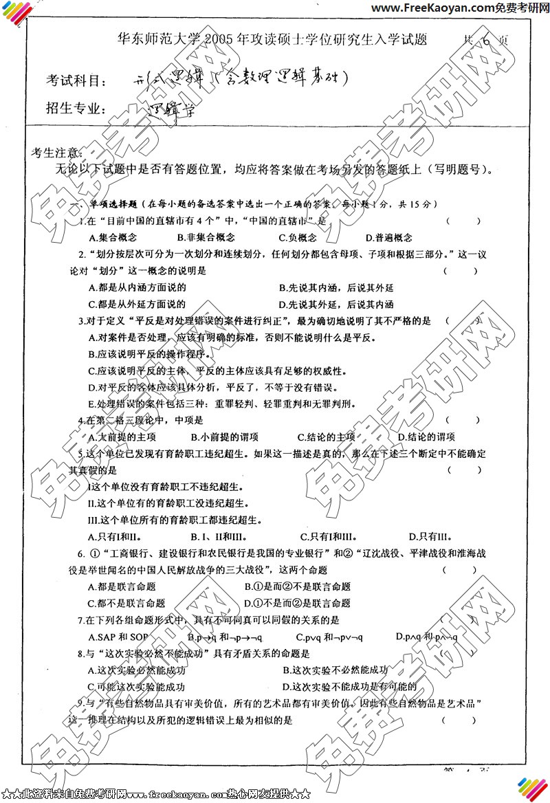 华东师范大学2005年半岛在线注册真题-形式逻辑(含数理逻辑基础)