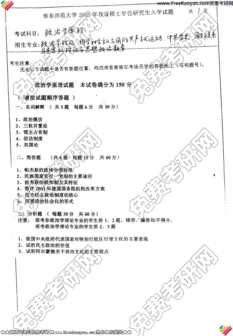 华东师范大学2005年半岛在线注册真题-政治学原理