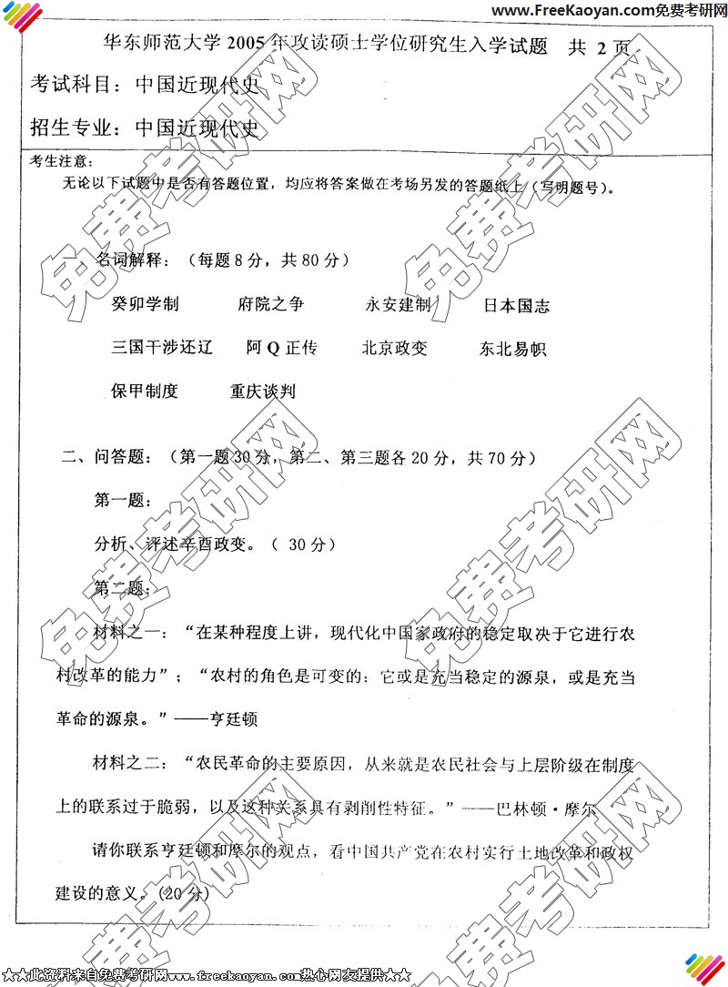 华东师范大学2005年半岛在线注册真题-中国近现代史