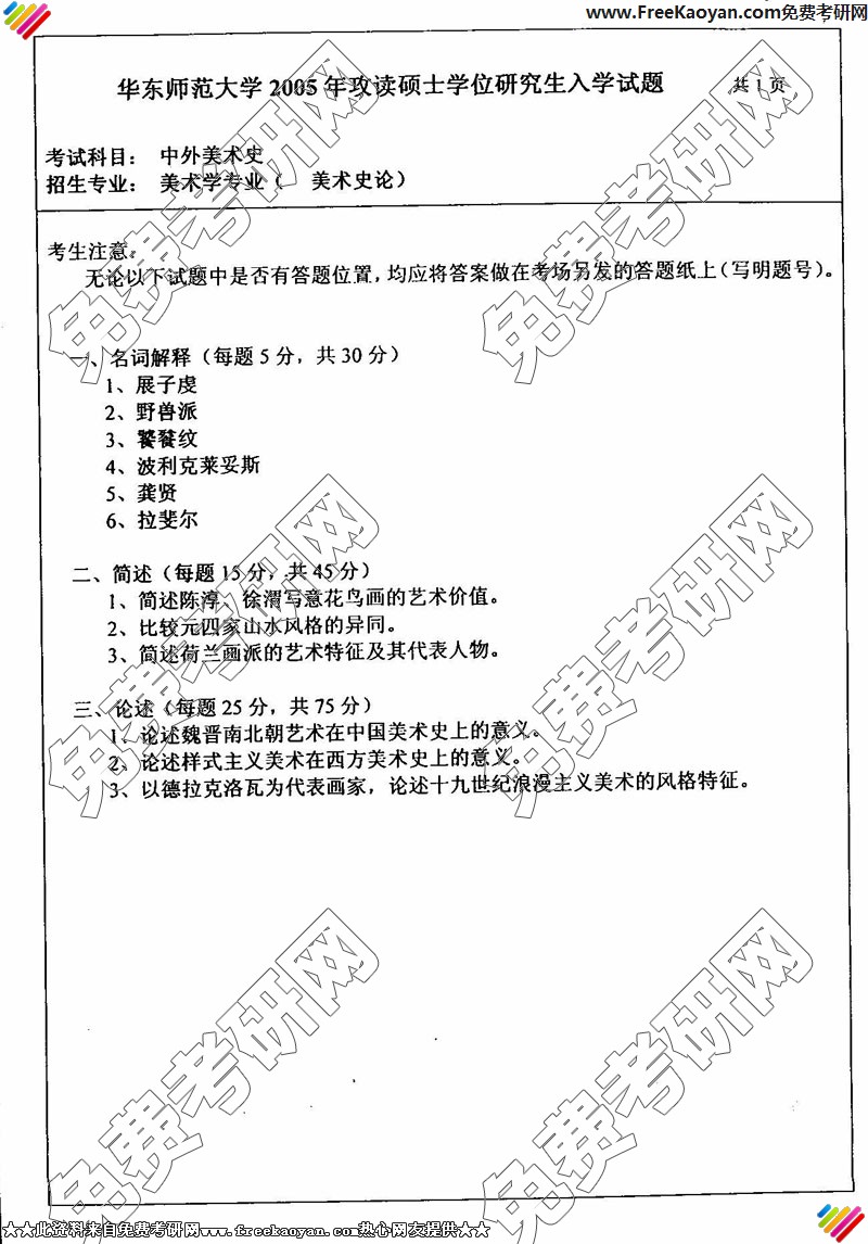 华东师范大学2005年半岛在线注册真题-中外美术史