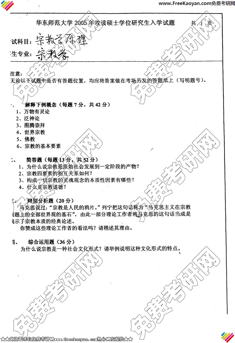 华东师范大学2005年半岛在线注册真题-宗教学原理