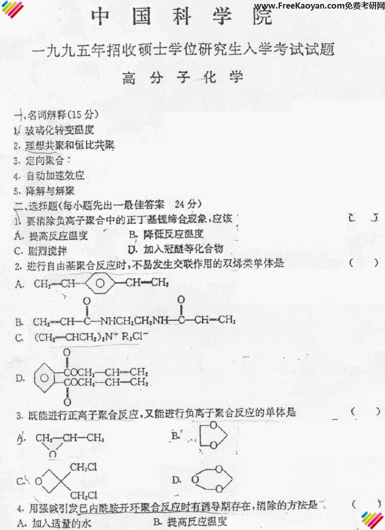 专业课半岛在线注册经验 本站小编 FreeKaoyan 2018-01-22中国科学技术大学1994年半岛在线注册真题-高分子化学