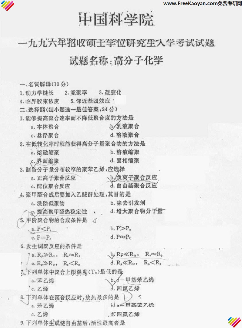 专业课半岛在线注册经验 本站小编 FreeKaoyan 2018-01-22中国科学技术大学1991年半岛在线注册真题-高分子化学