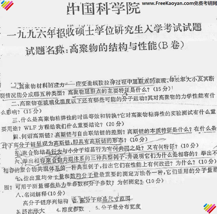 专业课半岛在线注册经验 本站小编 FreeKaoyan 2018-01-22中国科学技术大学1996年半岛在线注册真题-高分子化学