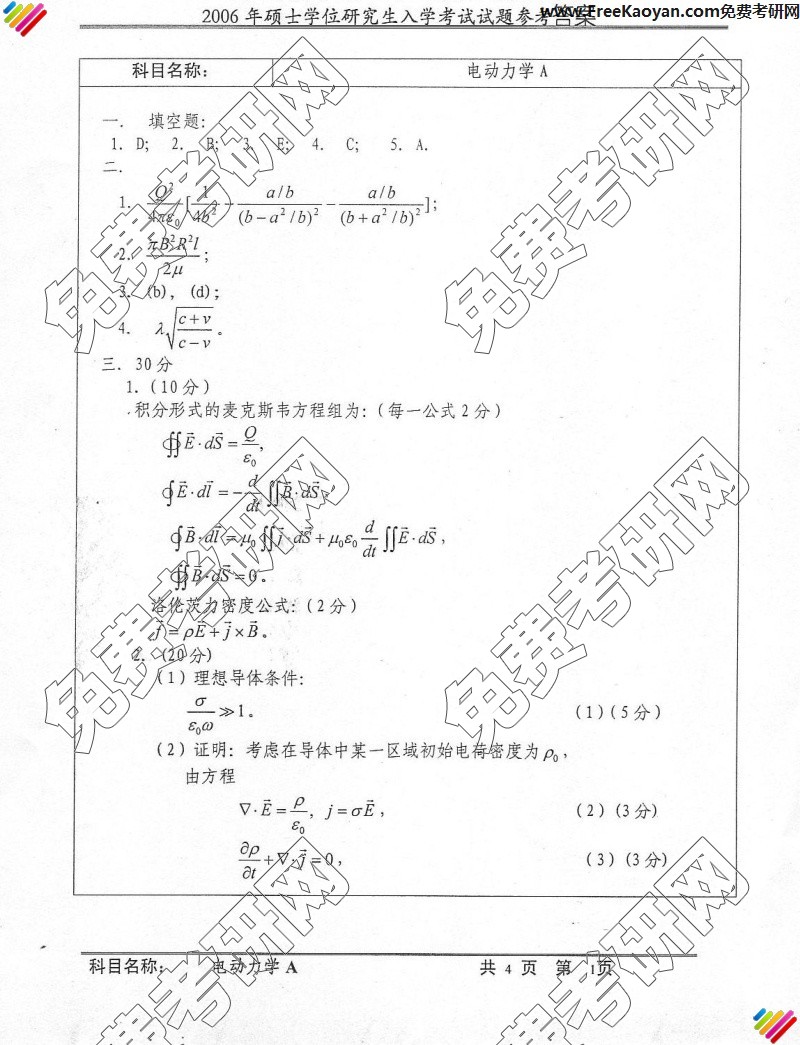 中国科学技术大学2006年半岛在线注册真题-电动力学答案