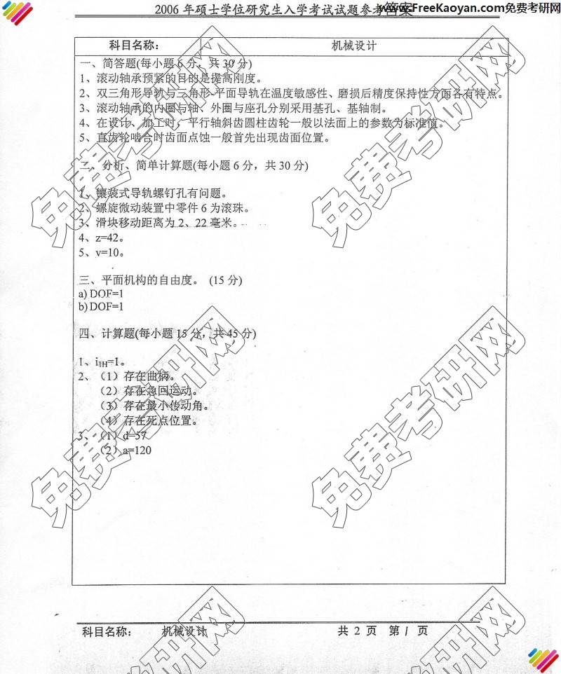 中国科学技术大学2006年半岛在线注册真题-机械设计答案