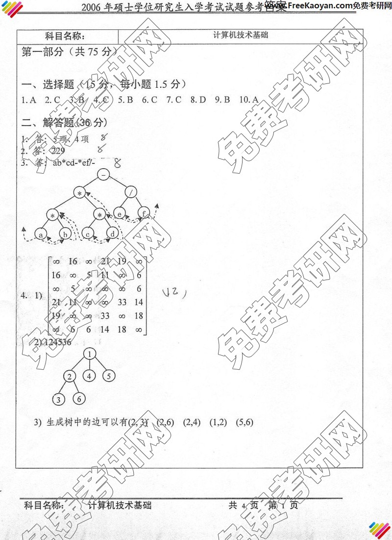 中国科学技术大学2006年半岛在线注册真题-计算机技术基础答案