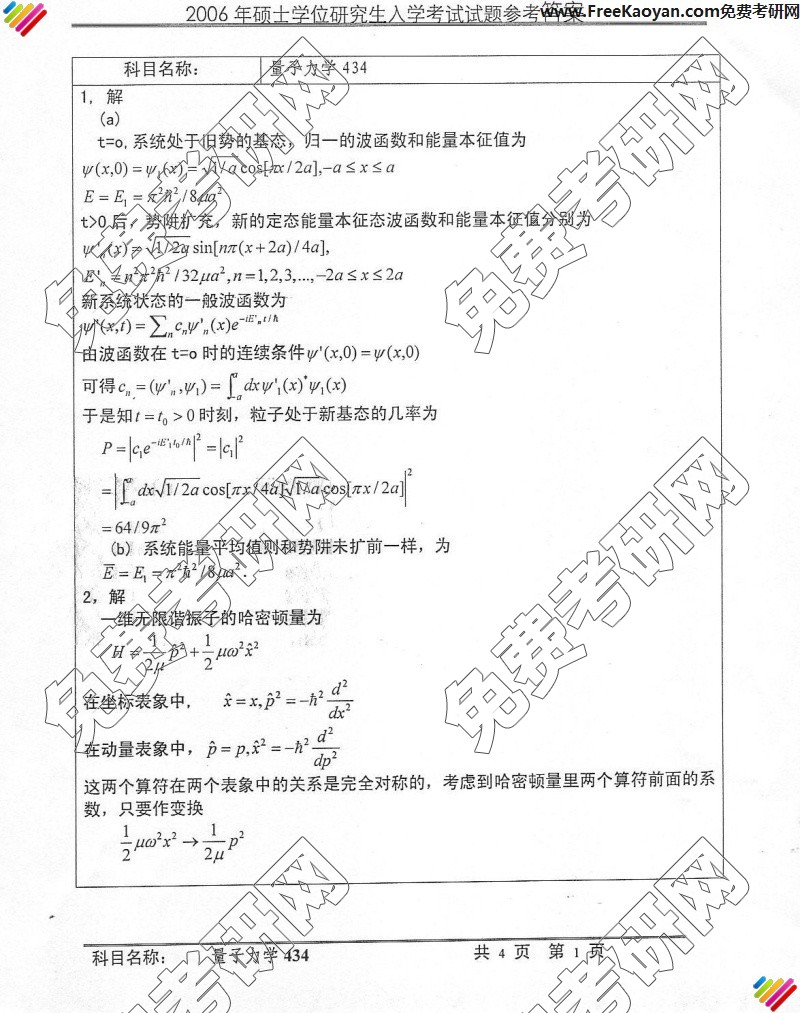 专业课半岛在线注册经验 本站小编 FreeKaoyan 2018-01-22中国科学技术大学2006年半岛在线注册真题-量子力学