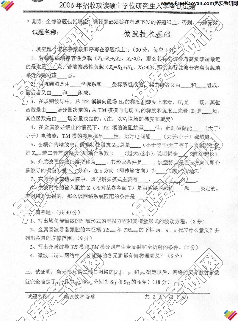 中国科学技术大学2006年半岛在线注册真题-微波技术基础