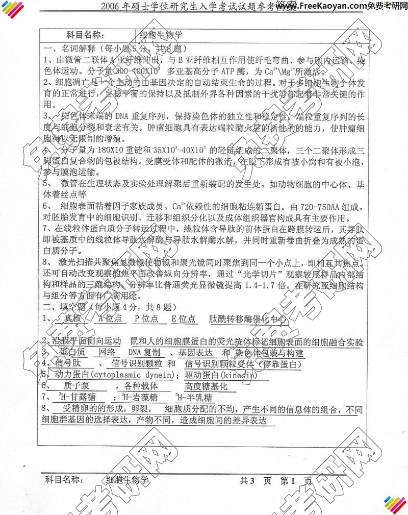 中国科学技术大学2006年半岛在线注册真题-细胞生物学答案