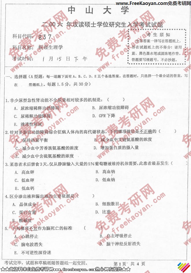 专业课半岛在线注册经验 本站小编 FreeKaoyan 2018-01-22中山大学2006年半岛在线注册真题-生理学