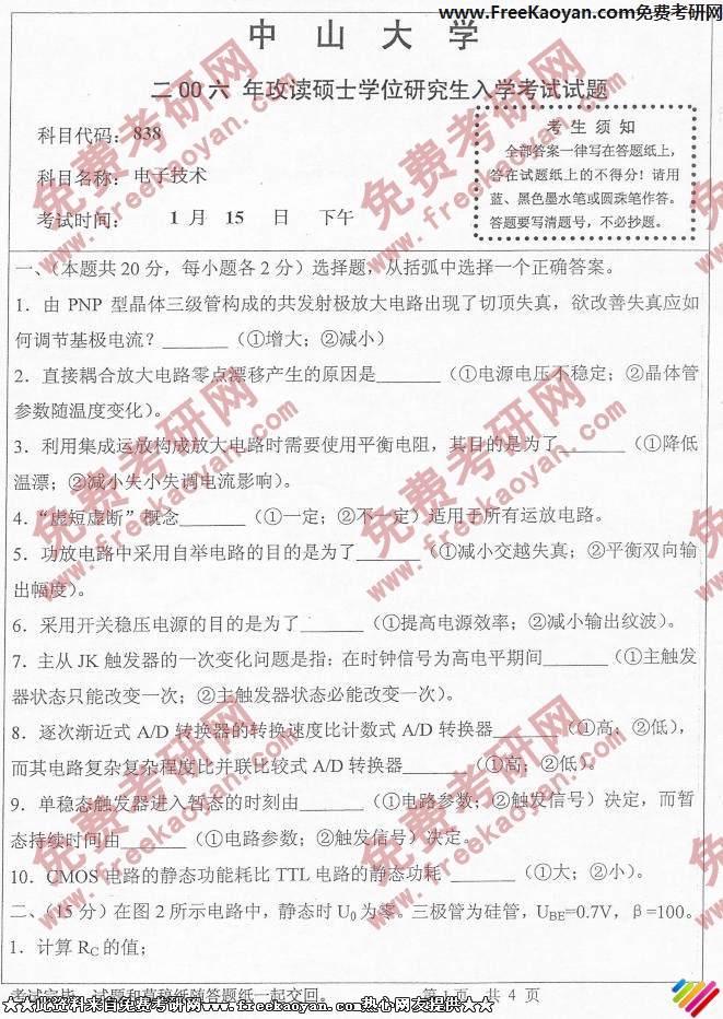 相关话题/中山大学 半岛在线注册真题 电子技术