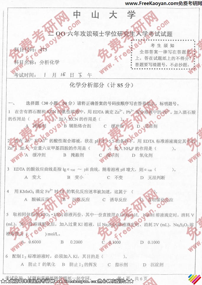相关话题/中山大学 半岛在线注册真题 分析化学