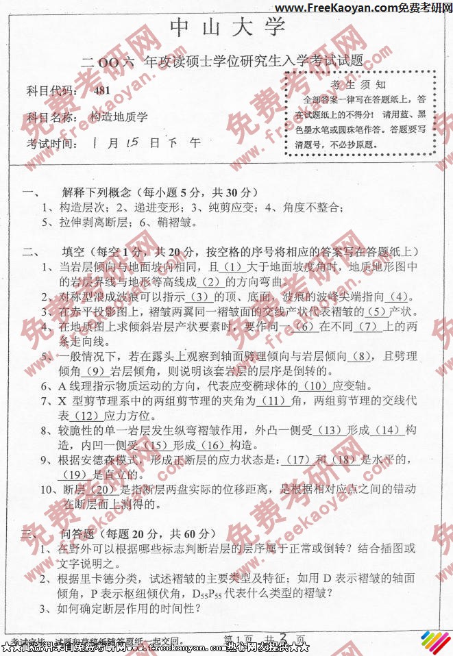 专业课半岛在线注册经验 本站小编 FreeKaoyan 2018-01-22中山大学2006年半岛在线注册真题-地下水资源与环境