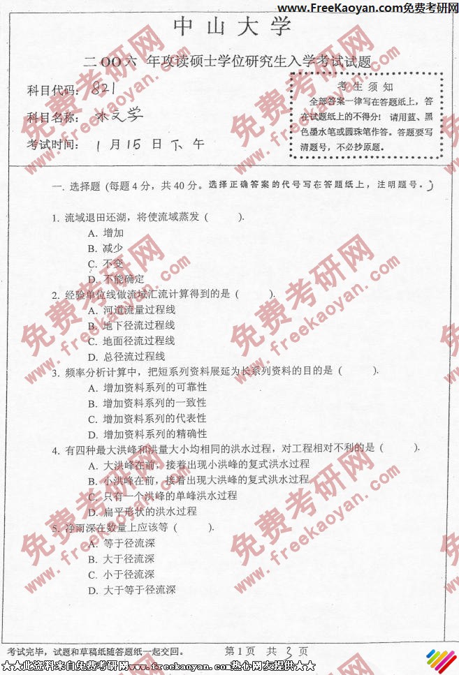 专业课半岛在线注册经验 本站小编 FreeKaoyan 2018-01-22中山大学2006年半岛在线注册真题-数学初试综合考试(六门任选两门)