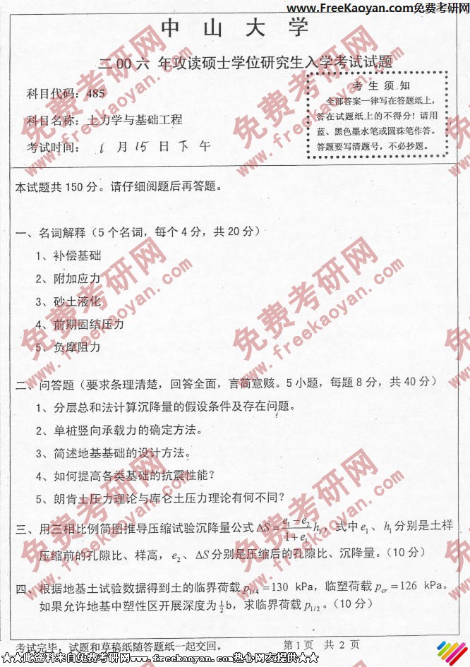 中山大学2006年半岛在线注册真题-土力学与基础工程