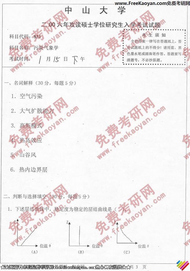 相关话题/半岛在线注册真题 污染 中山大学 气象学