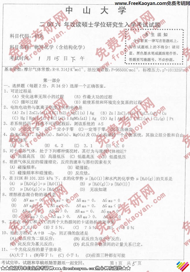 相关话题/中山大学 半岛在线注册真题 物理化学