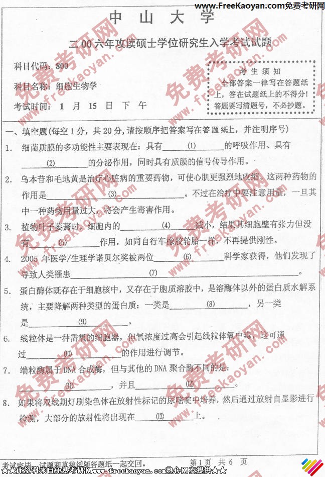 相关话题/中山大学 半岛在线注册真题 细胞生物学