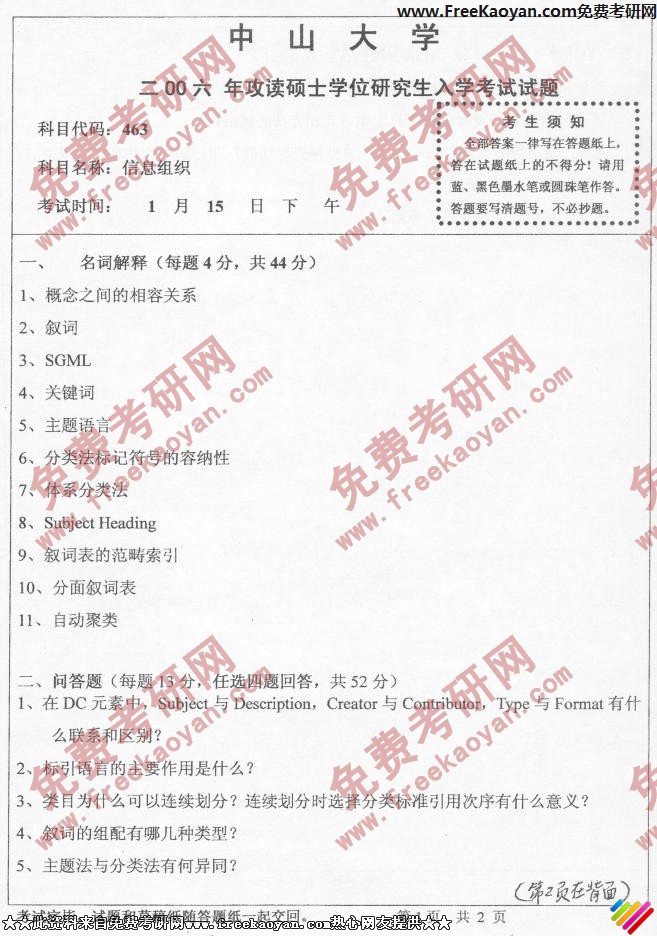 专业课半岛在线注册经验 本站小编 FreeKaoyan 2018-01-22中山大学2006年半岛在线注册真题-物理化学