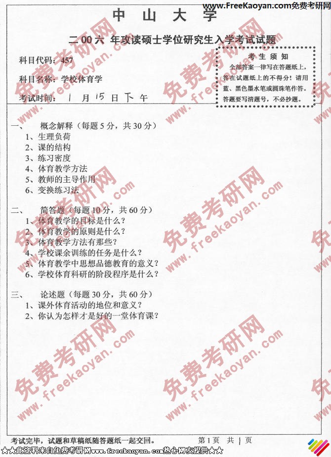 中山大学2006年半岛在线注册真题-学校体育学