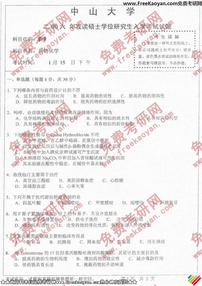 相关话题/中山大学 半岛在线注册真题 药物化学