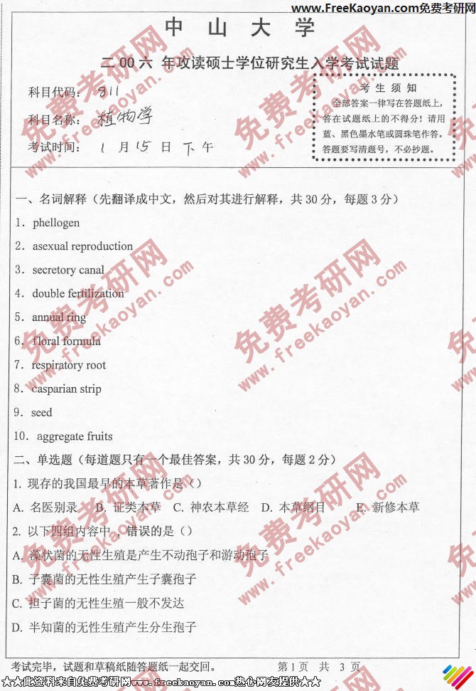 专业课半岛在线注册经验 本站小编 FreeKaoyan 2018-01-22中山大学2006年半岛在线注册真题-学校体育学