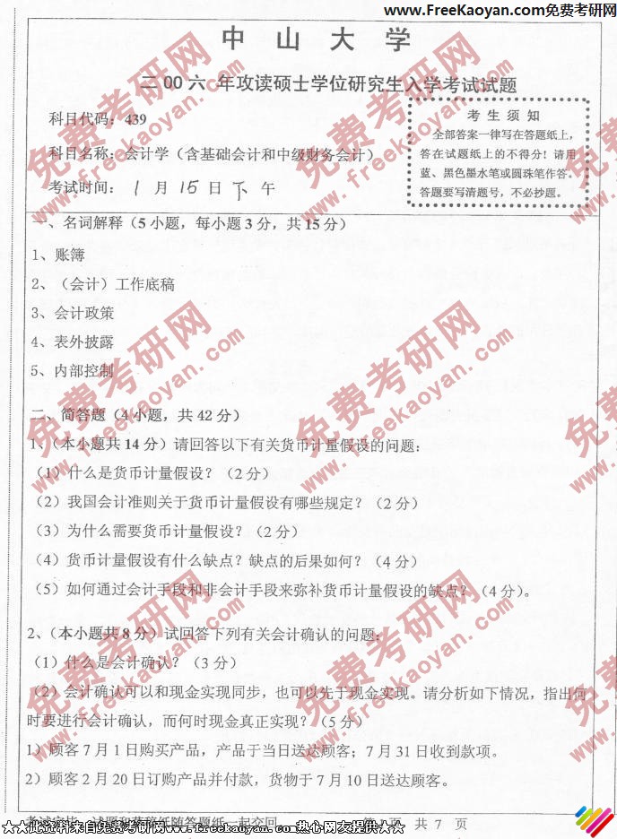 相关话题/会计学 半岛在线注册真题 基础 中山大学 会计