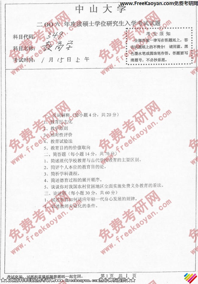专业课半岛在线注册经验 本站小编 FreeKaoyan 2018-01-22中山大学2006年半岛在线注册真题-护理综合