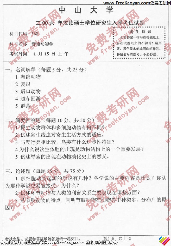 专业课半岛在线注册经验 本站小编 FreeKaoyan 2018-01-22中山大学2006年半岛在线注册真题-口腔综合