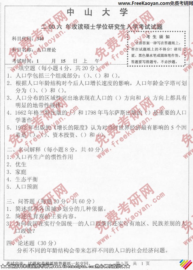 中山大学2006年半岛在线注册真题-人口理论