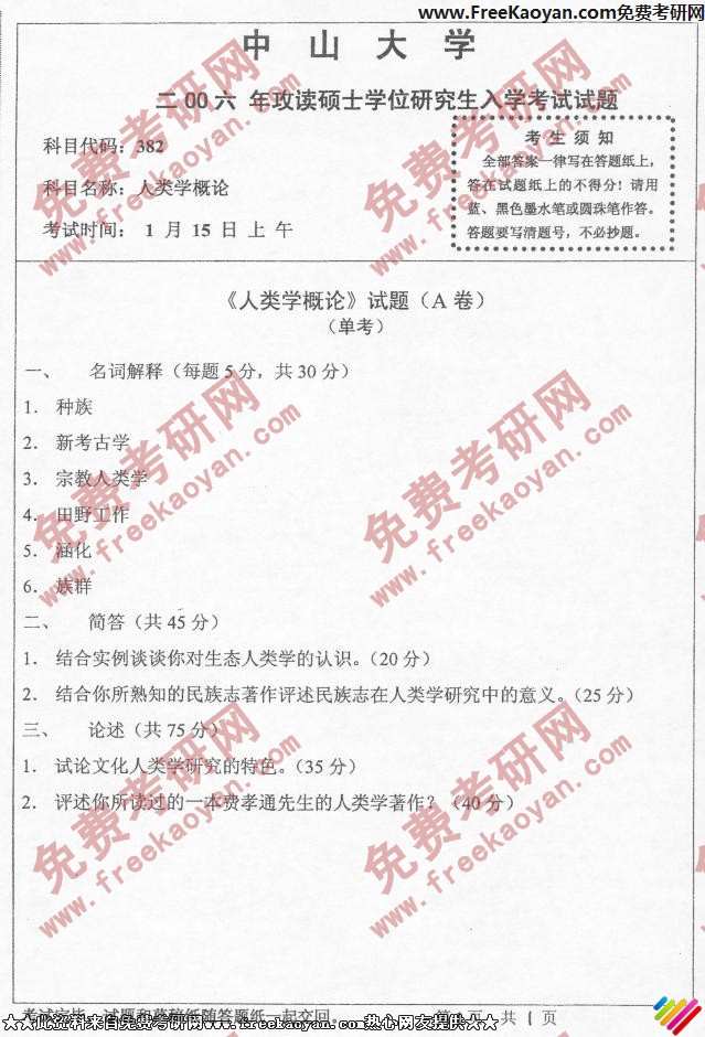 专业课半岛在线注册经验 本站小编 FreeKaoyan 2018-01-22中山大学2006年半岛在线注册真题-人类学概论