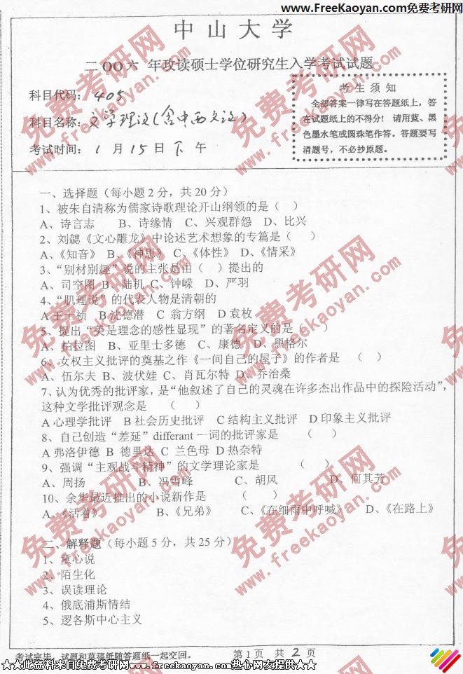 相关话题/半岛在线注册真题 中山大学 文学理论 文论 中西
