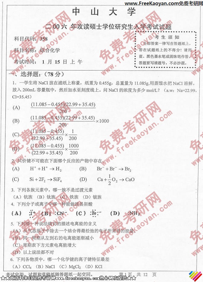 相关话题/半岛在线注册真题 中山大学 化学 综合