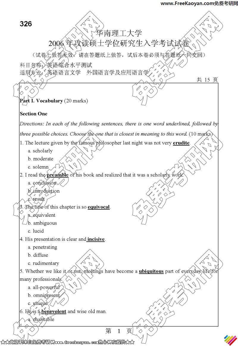 华南理工大学2006年半岛在线注册真题-英语综合水平测试