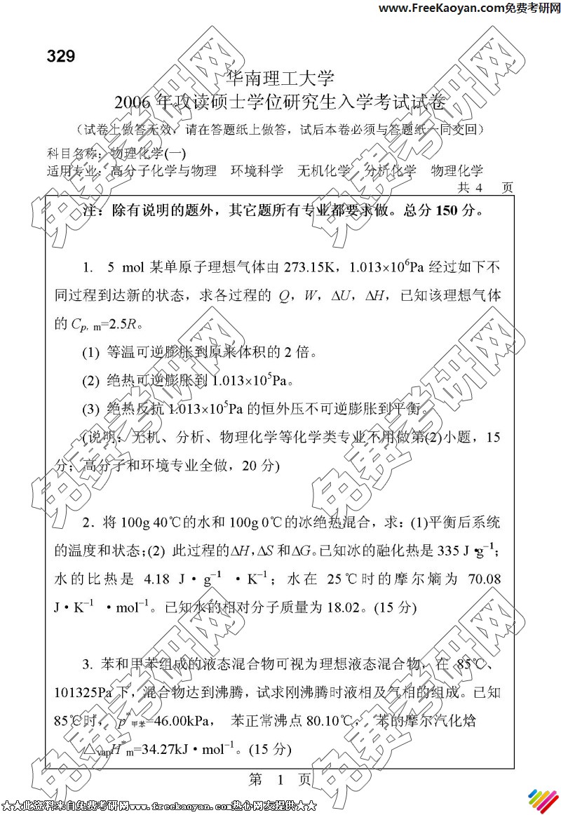 专业课半岛在线注册经验 本站小编 FreeKaoyan 2018-01-22中山大学2006年半岛在线注册真题-综合化学
