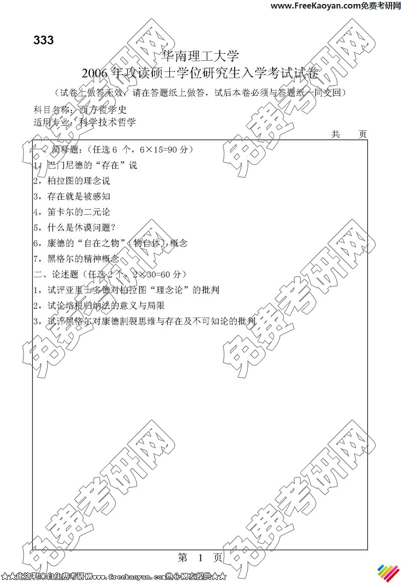 专业课半岛在线注册经验 本站小编 FreeKaoyan 2018-01-22华南理工大学2006年半岛在线注册真题-辩证唯物主义与历史唯物主义