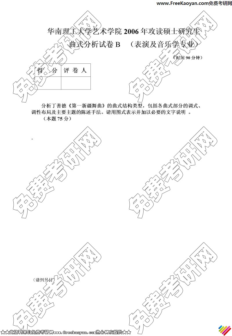 华南理工大学2006年半岛在线注册真题-和声与作品分析