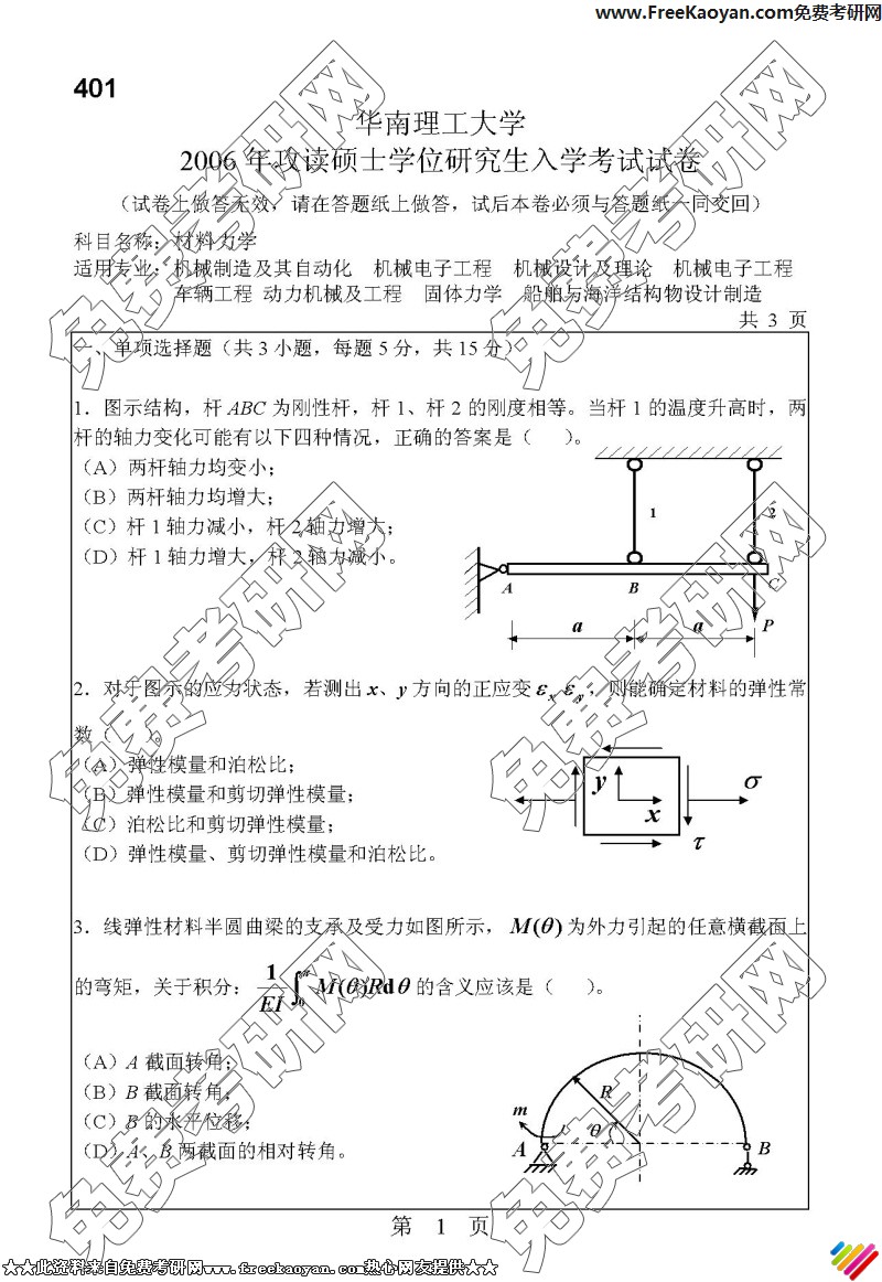 相关话题/华南理工大学 半岛在线注册真题 材料力学
