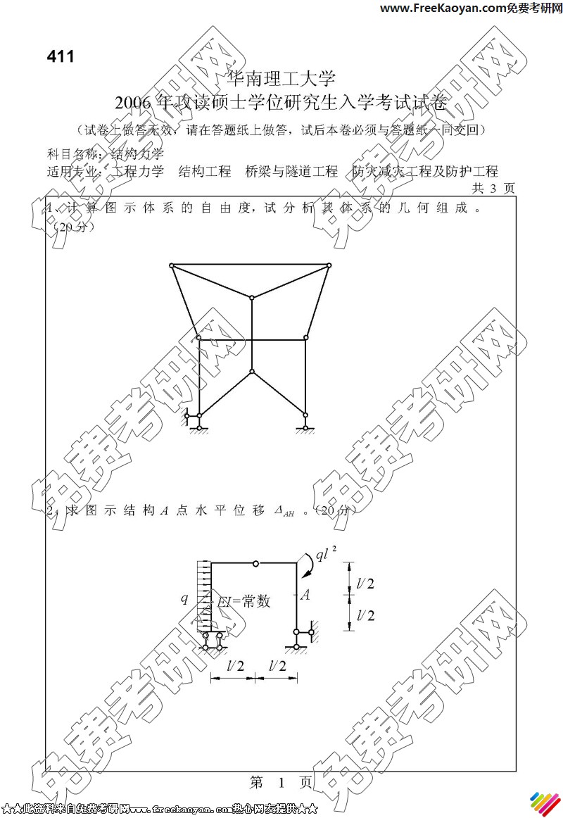 相关话题/华南理工大学 半岛在线注册真题 结构力学