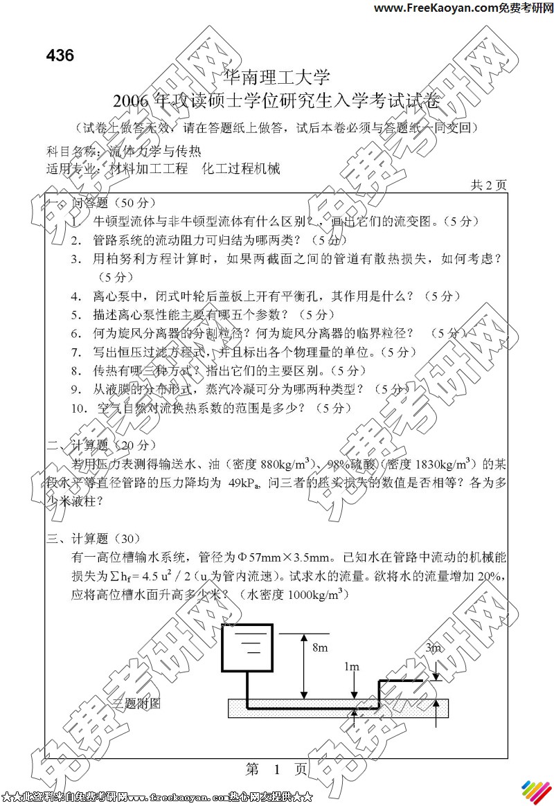 专业课半岛在线注册经验 本站小编 FreeKaoyan 2018-01-22华南理工大学2006年半岛在线注册真题-不可压缩流体力学