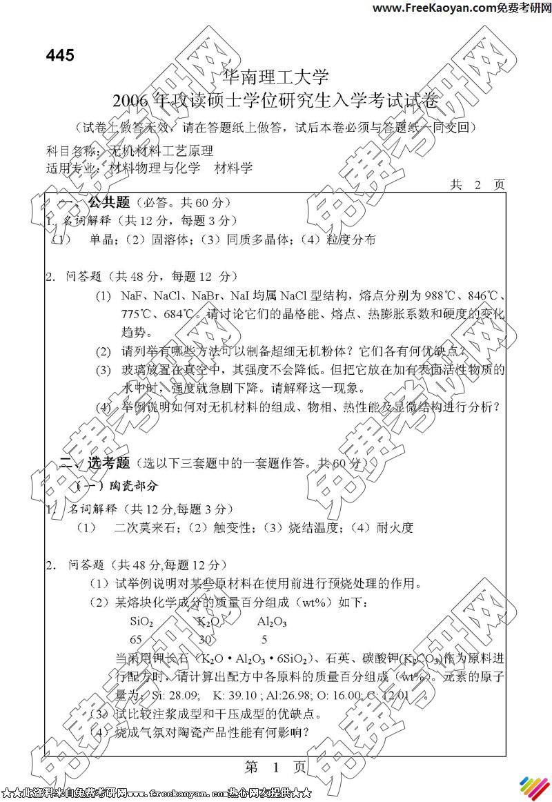 相关话题/材料 半岛在线注册真题 华南理工大学 工艺 无机