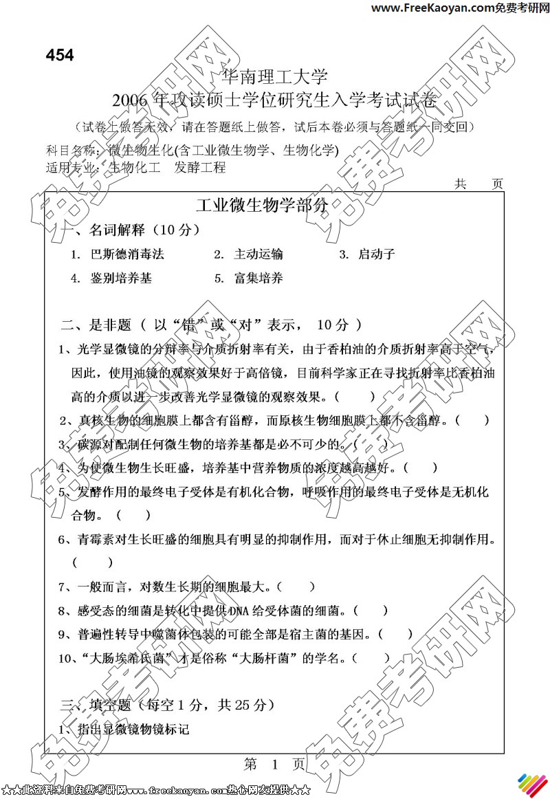 华南理工大学2006年半岛在线注册真题-微生物生化(含工业微生物学、生物化学)