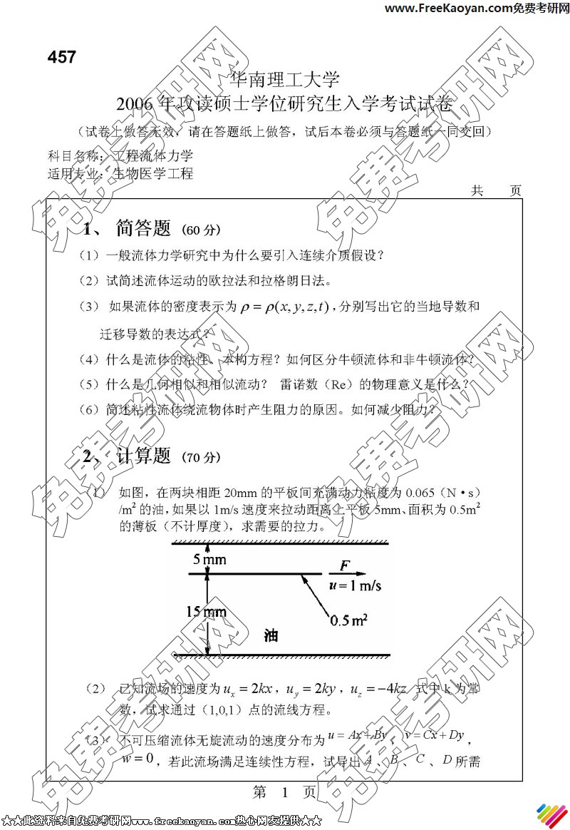 相关话题/半岛在线注册真题 华南理工大学 流体力学 工程