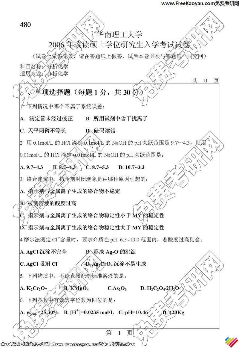 相关话题/华南理工大学 半岛在线注册真题 分析化学